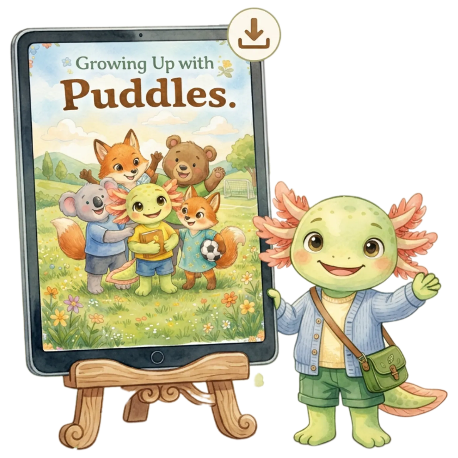 Puddles is a lovable nine-year-old axolotl who feels things deeply and is learning how to understand the world around him.